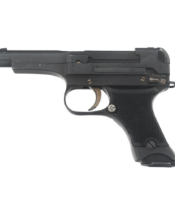 Chambered in 8x22mm Nambu, the Type 94 was a compact semi-automatic pistol with a 6-round detachable box magazine. It had a short-recoil, locked-breech design and was known for its lightweight, streamlined form. The frame and slide were made from blued steel, with grooved wooden grips attached by screws.
